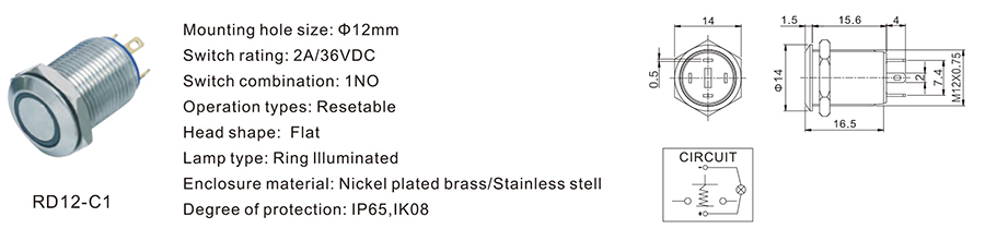 金屬開(kāi)關(guān) | RD12-D5 | 36VDC | 2A | / | / | ≥100,000 CYCLES | 立即申請(qǐng) | 下載 |