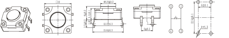 12.4X12.4mm輕觸開關(guān) | R2996 | 12VDC | 50mA | 4±1 N | 1.5±0.3mm | ≥100,000 CYCLES | 立即申請 | 下載 |