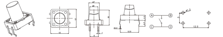 防塵12x12mm | R0190 | 12VDC | 50mA | 2±1 N | 0.3±0.02mm | ≥100,000 CYCLES | 立即申請 | 下載 |