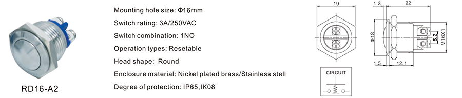 16MM金屬開關(guān)RD16-D2 金屬開關(guān) RD16-D2 36VDC 2A / / ≥100,000 CYCLES 立即申請 下載