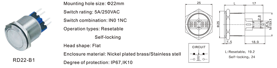 22MM金屬開關(guān)RD22-B1