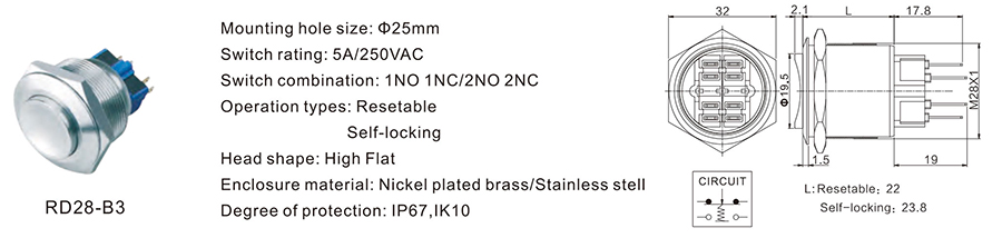 28MM金屬開關RD28-B3