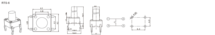 6x6mm輕觸開關(guān) | RTSM-6 | 12VDC | 50mA | 2±1 N | 0.3mm | ≥100,000 CYCLES | 立即申請(qǐng) | 下載 |