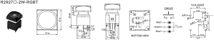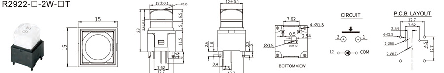 帶燈按鈕開關(guān)R292 帶燈按鈕開關(guān) R292 12VDC 100mA 2±1 N 4.5±0.2mm ≥100,000 CYCLES 立即申請 下載