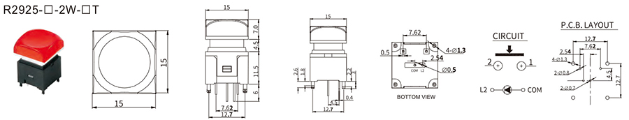帶燈LED發(fā)光按鈕開關(guān)R2915(A) 帶燈按鈕開關(guān) R2915(A) 25/100/250VDC 20/50mA 2±1 N / ≥100,000 CYCLES 立即申請 下載