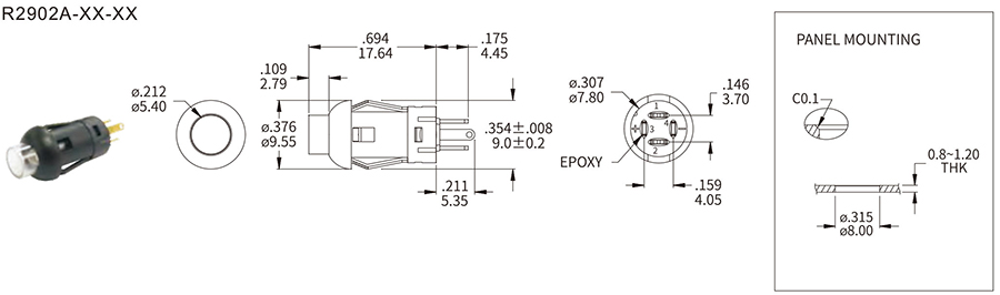 帶燈按鈕開關(guān)R2902A | R2902A | 30VDC | 10mA | 2±1 N | 1.2±0.3mm | ≥100,000 CYCLES | 立即申請(qǐng) | 下載 |