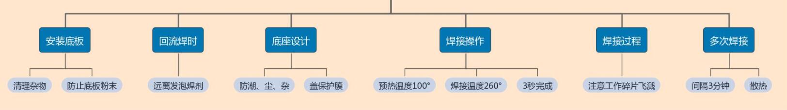 ④一般建議焊接預(yù)熱溫度在100℃以下時采用輕觸開關(guān),操作時焊接溫度控制在260℃,焊后時間在3秒內(nèi)完成。否則后開關(guān)的焊接時間過長,容易導(dǎo)致端腳被焊透或損壞,所以請多注意焊接時間和焊接溫度這兩個關(guān)鍵點(diǎn)。