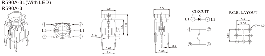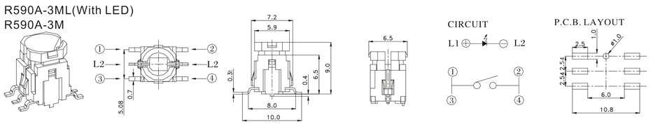 帶燈輕觸開關 | R509K | 35VDC | 10mA | 2±1 N | 1.0mm | ≥100,000 CYCLES | 立即申請 | 下載 |