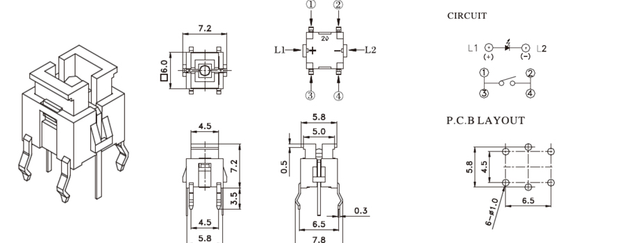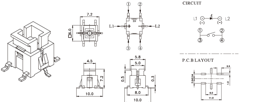 帶燈輕觸開關(guān) | R509K | 35VDC | 10mA | 2±1 N | 1.0mm | ≥100,000 CYCLES | 立即申請 | 下載 |