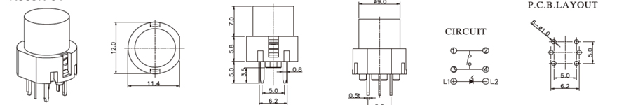 帶燈輕觸開(kāi)關(guān) | R509K | 35VDC | 10mA | 2±1 N | 1.0mm | ≥100,000 CYCLES | 立即申請(qǐng) | 下載 |