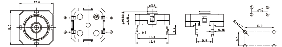 防水輕觸開關 | RTSHW-7 | 12VDC | 50mA | 2±1 N | 0.5±0.3mm | ≥100,000 CYCLES | 立即申請 | 下載 |
