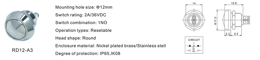 12MM金屬開關(guān)RD12-A3