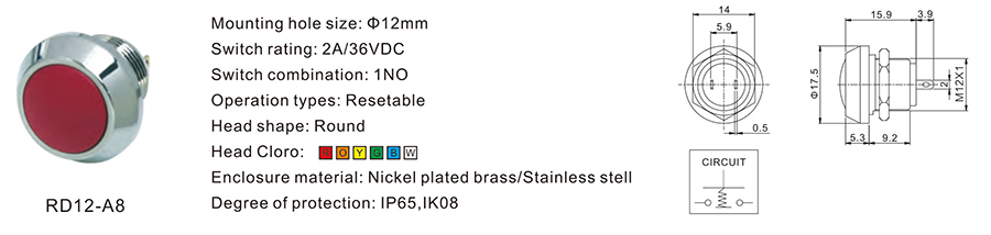 金屬開關(guān) | RD12-D2 | 36VDC | 2A | / | / | ≥100,000 CYCLES | 立即申請 | 下載 |
