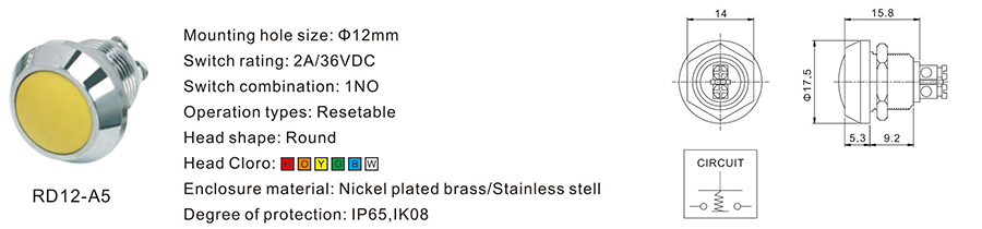 12MM金屬開關(guān)RD12-A5
