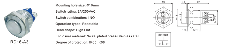 16MM金屬開關(guān)RD16-A3