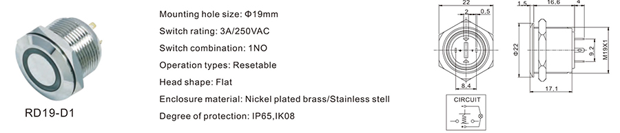 19MM金屬開關(guān)RD19-D1