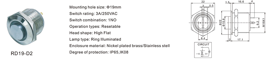 19MM金屬開關(guān)RD19-D2