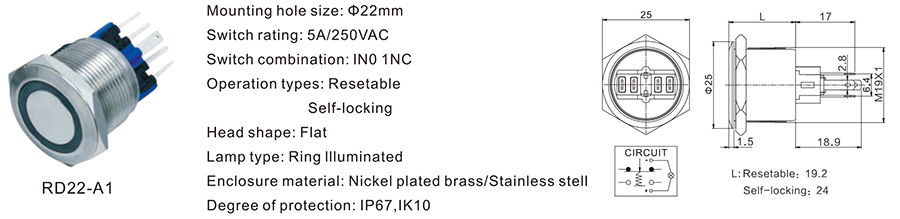 22MM金屬開關(guān)RD22-A1