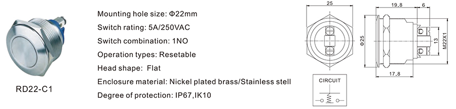 金屬開(kāi)關(guān) | RD22-G1 | 250VDC | 5A | / | / | ≥100,000 CYCLES | 立即申請(qǐng) | 下載 |