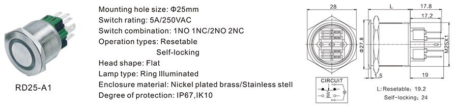 25MM金屬開關(guān)RD25-A1