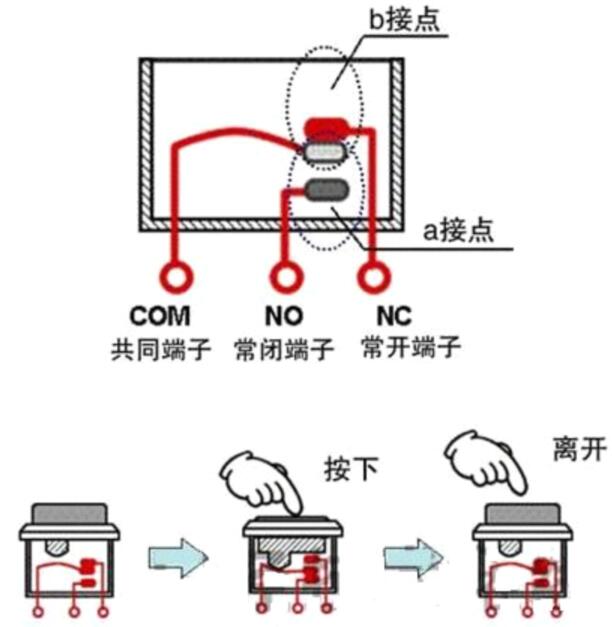 開關(guān)按接觸類型可分為a型觸點、b型觸點和c型觸點三種。接觸類型是指,“操作(按下)開關(guān)后,觸點閉合”這種操作狀況和觸點狀態(tài)之間的關(guān)系。需要根據(jù)用途來選擇合適接觸類型的開關(guān)。下面來簡單介紹一下關(guān)于各接觸類型的開關(guān)。