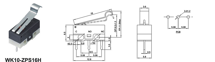 微動開關 | WK10-ZPS16H | 250VDC/125VDC/30VDC | 3(0.5)A | / | / | 1,000,000 cycles | 立即申請 | 下載 |